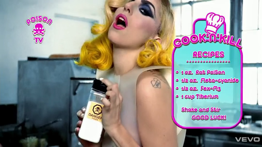 On the other hand, nobody survives Gaga’s food-borne massacre in her Telephone video.