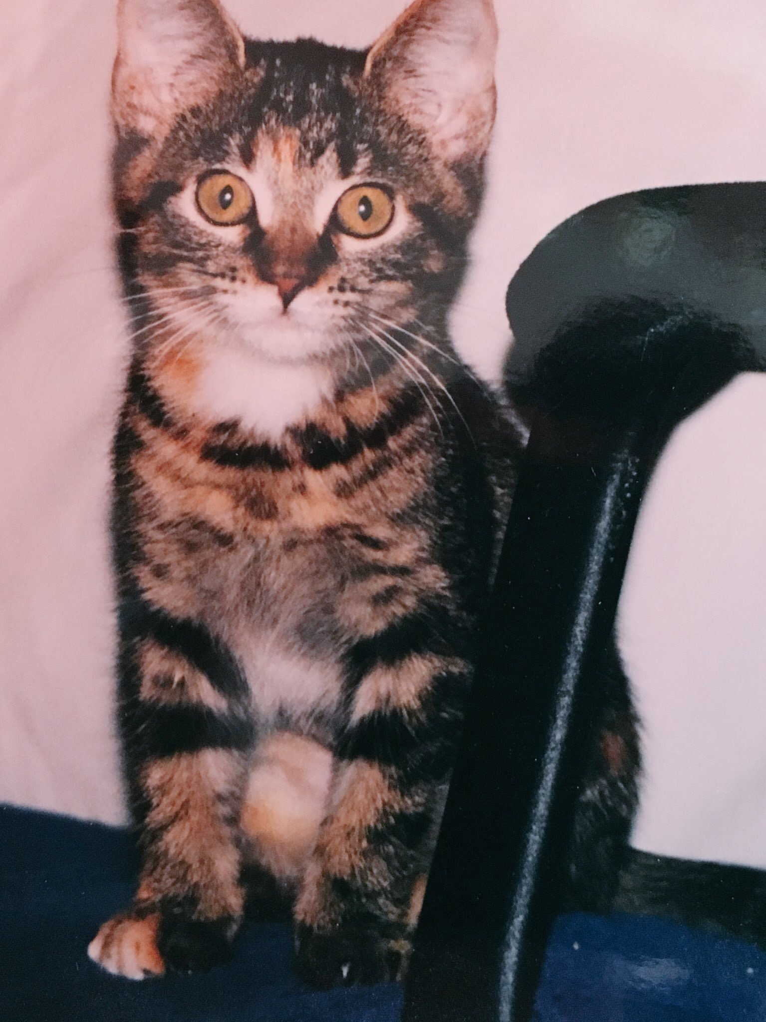 I started grad school in fall 2000, right as some of my college friends were landing sweet dot-com jobs that they’d soon lose. I moved to Chicago in August; I had a tiny studio on Patterson (just north of Addison) between Sheridan and the lake. And I was all alone. School didn’t start for a month, and when it did, I found myself a woman in a philosophy program, i.e., surrounded mostly by men (without the kindness and mentorship of J, C, and C, the three women in the program, I’d have been really lonely). So it’s the beginning of October, I’m in a new city, no real friends yet, living by myself for the first time…I was just lonely. I planned on getting a cat sometime, but hadn’t decided when exactly: it was on the list.