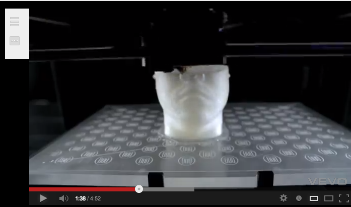 So visually, the video sets up a contrast between 2D reproduction (the infinite mirroring) and 3D/4D reproduction. 2D visual representation is shown as a technology of copying originals: there’s the foregrounded, flesh-&-blood will.i.am, and then there are first, second, third, n-order reflections of reflections of reflections. It is, in this way, indexical (reflections indexed to other reflections, & ultimately back to an original).  The video’s “post-cinematic” 3D/4D production (by ‘production’ I mean both musical/video craftspersonship, and making/manufacturing) is not only not indexical necessarily, or even primarily, visual. We do see plenty of visual manifestations of 3D/4D production: the transmission and transposition of their profile-signals into video images on phones and cameras, into 3D printed models, etc.  However, I would suggest that the song’s lyrics, as well as its use of the “Britney” sample, suggest that this 3D/4D production is most optimally (even if not necessarily or sufficiently) sonic.